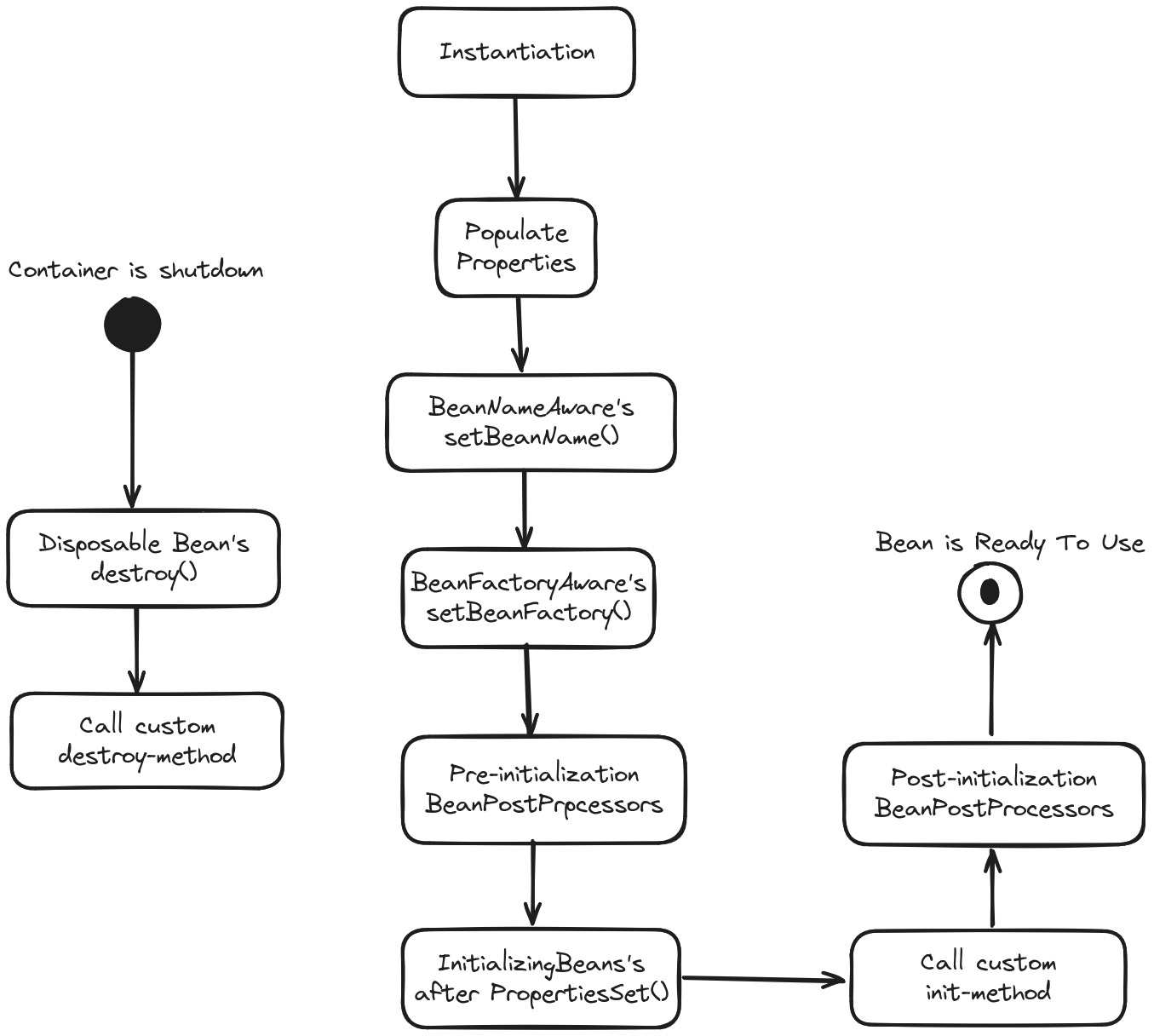 Các phương thức postProcessAfterInitialization() sẽ được gọi để thực hiện các hành vi tùy chỉnh hoặc kiểm tra cuối cùng trước khi Bean đi vào hoạt động.